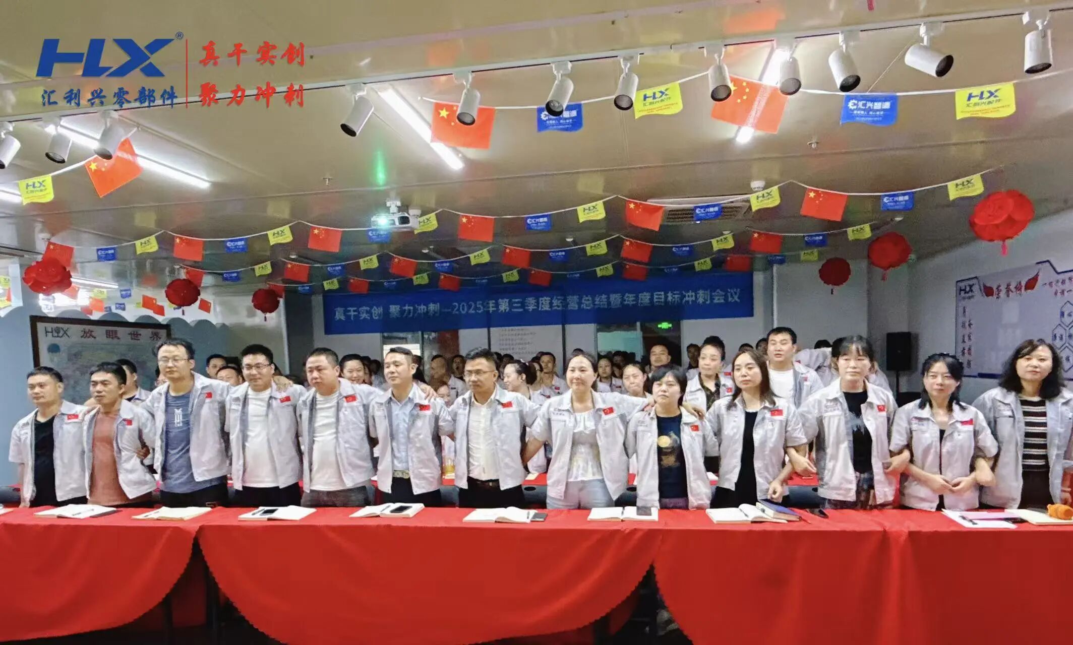 大会尾声,全场高潮迭起。全体人员肩并肩一起唱响汇利兴之歌《相信我们会创造奇迹》,歌声穿透会场的每一个角落,从最初的轻声附和,渐渐汇聚成一股滚烫而坚定的力量,像春日里破土的新芽,更像风雨中并肩的船帆!每个人眼中都闪烁着光,因为每一个人都坚信这不单单只是对未来的期许,更是我们创造下一个奇迹的胜利决心!