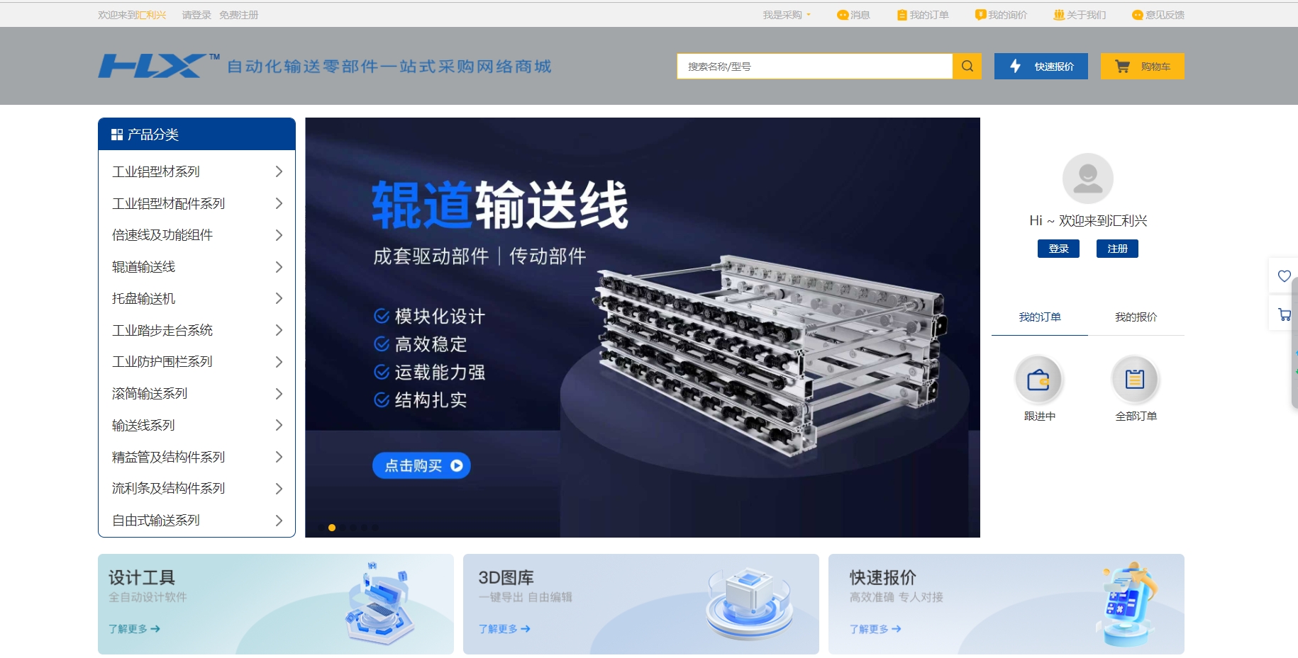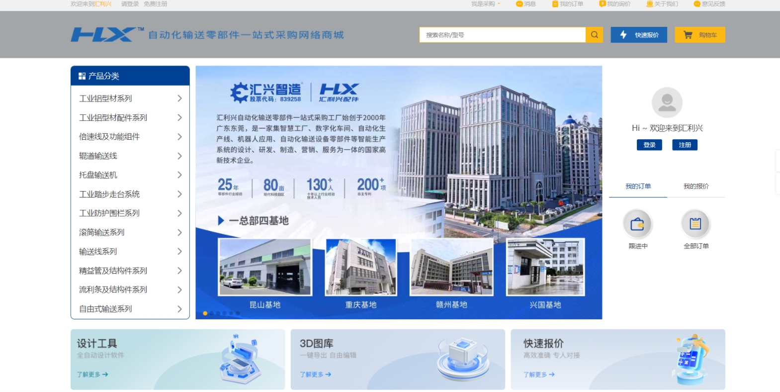 智造领航,制造业智能化向新而行!汇利兴作为自动化输送零部件领域的深耕者与推动者,正式开启采购新征程!今天,我们正式重磅发布“自动化输送零部件一站式采购商城PC端” 移动端APP。