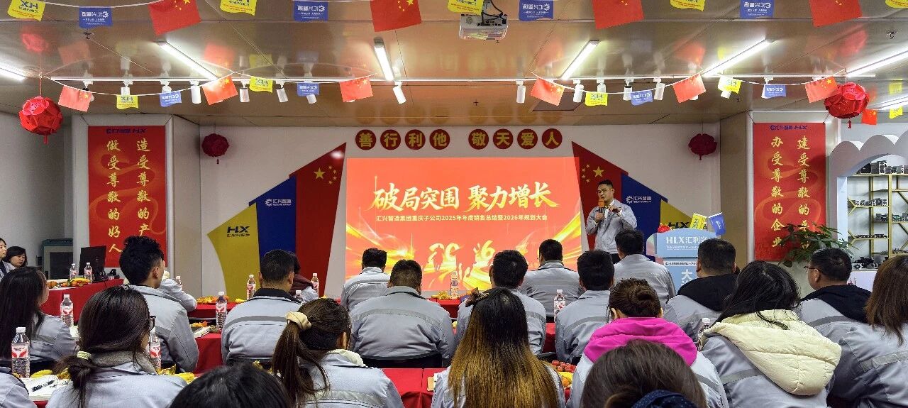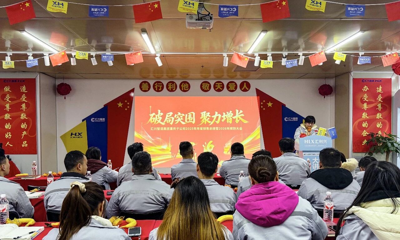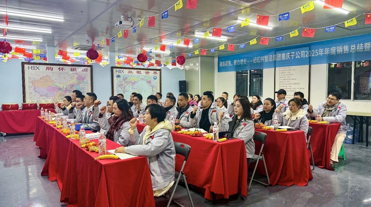 宏图已绘,战鼓催征。为全面复盘2025年度经营成果、系统锚定2026年发展方向,凝聚战略共识、统一行动步调,汇兴智造重庆子公司于1月14日召开2025年年度销售总结暨2026年工作规划大会。本次会议以“破局突围·聚力增长”为主题,锚定年度目标,共绘发展蓝图,推动年度经营目标落地见效。